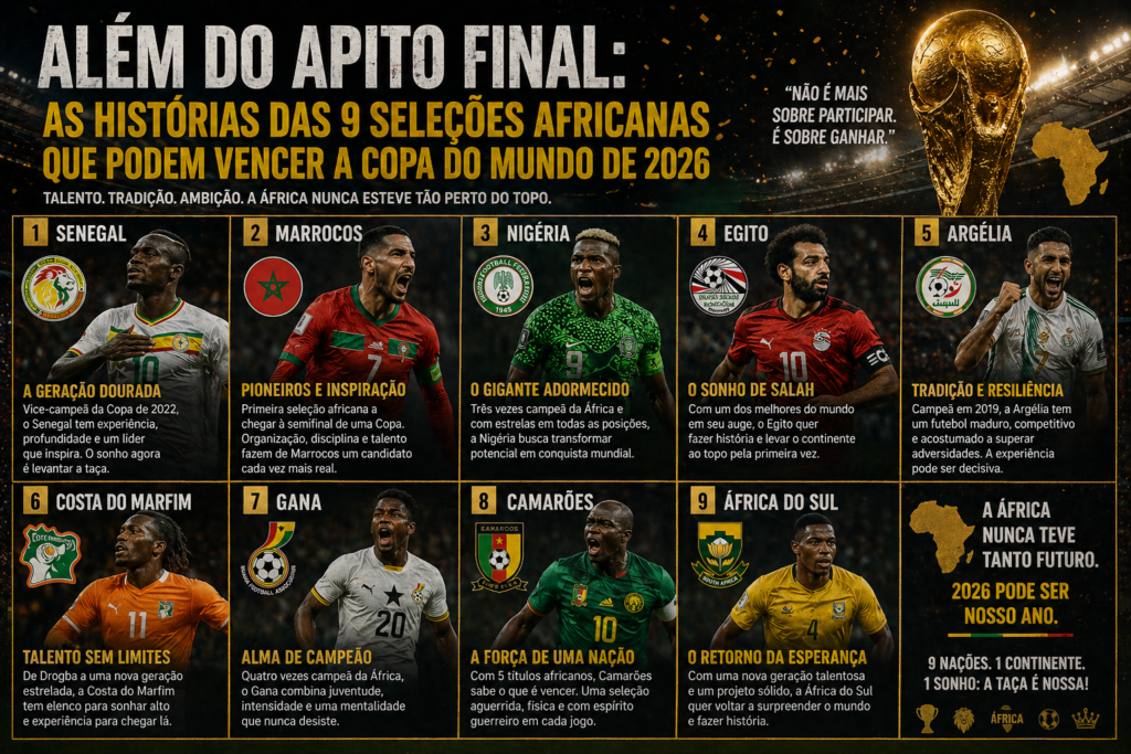 Quando a bola rolar na Copa de 2026, o mundo não verá apenas seleções africanas. Verá histórias de superação, de queda, de renascimento. E histórias, quando bem contadas, definem gerações.